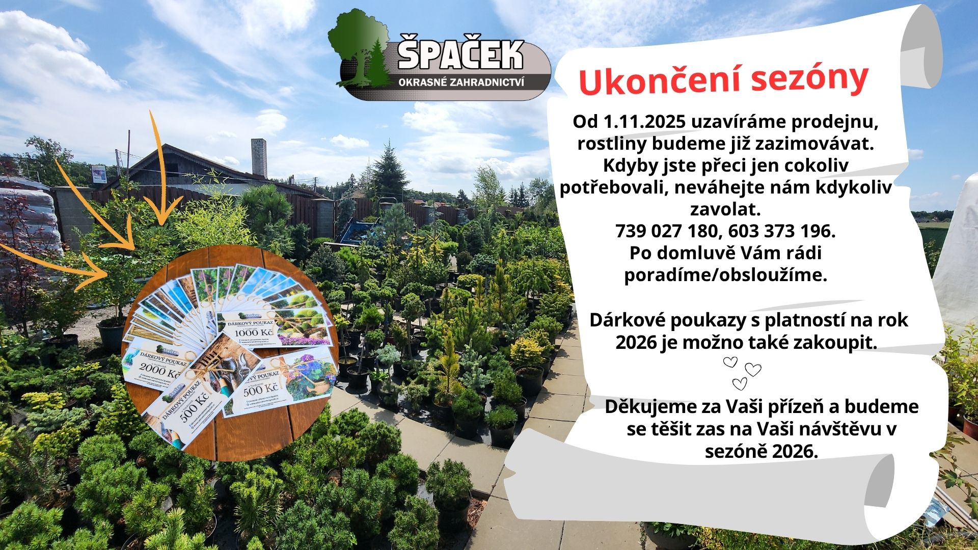 Vítejte na stránkách Zahradnictví Špaček, které se nachází ve Vysokém Chvojně nedaleko Holic. Nabízíme široký sortiment zahradnických potřeb a živých rostlin. Máme rozmanitý výběr balkonových květin, trav, vodních rostlin, jehličnanů, listnatých keřů a stromů, drobného ovoce a ovocných stromů ale i květináčů, přípravků pro boj s chorobami a škůdci....atd. Přes sezonu také rozšiřuje nabídku o sadbu zeleniny, květin a dalších letniček. Náš sortiment je pravidelně doplňován a rozšiřován. Věříme, že si z naší nabídky vyberete.